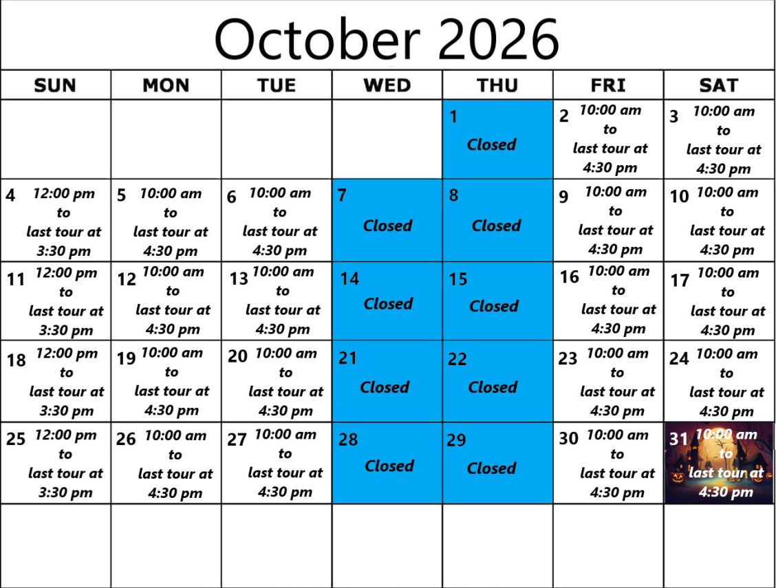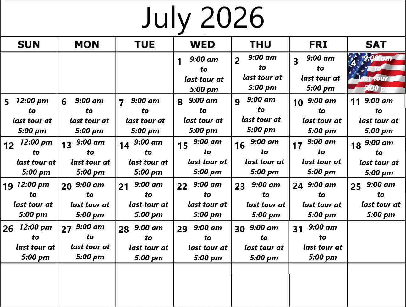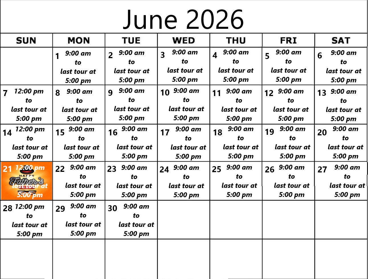 9:30,11:00, 12:30, 2:00, 3:30, 5:00